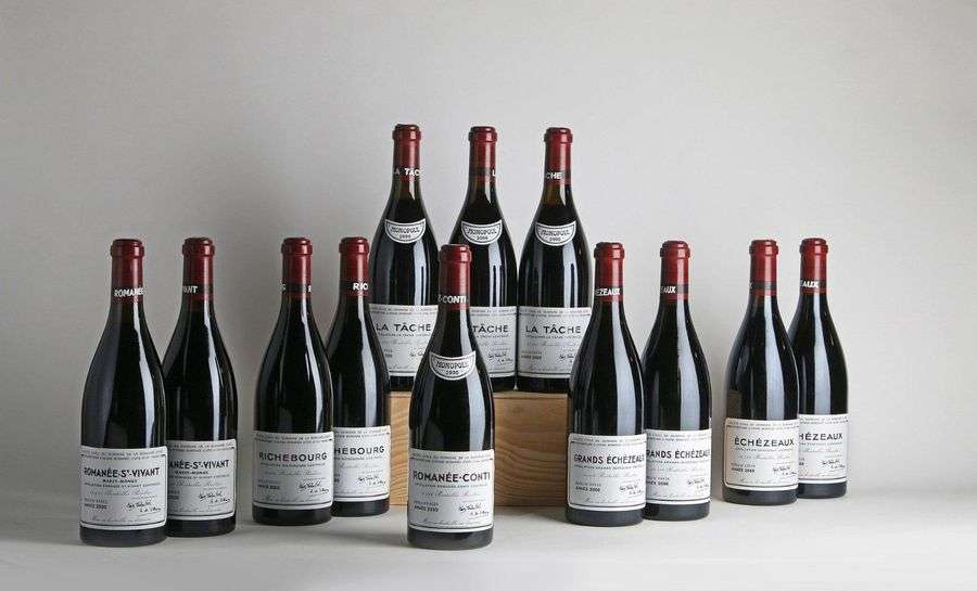CAISSE ASSORTIMENT DE 12 BOUTEILLES CONTENANT (Caisse Bois d'origine très légèrement abimée) : - 2000 - Domaine de la Romanée Conti