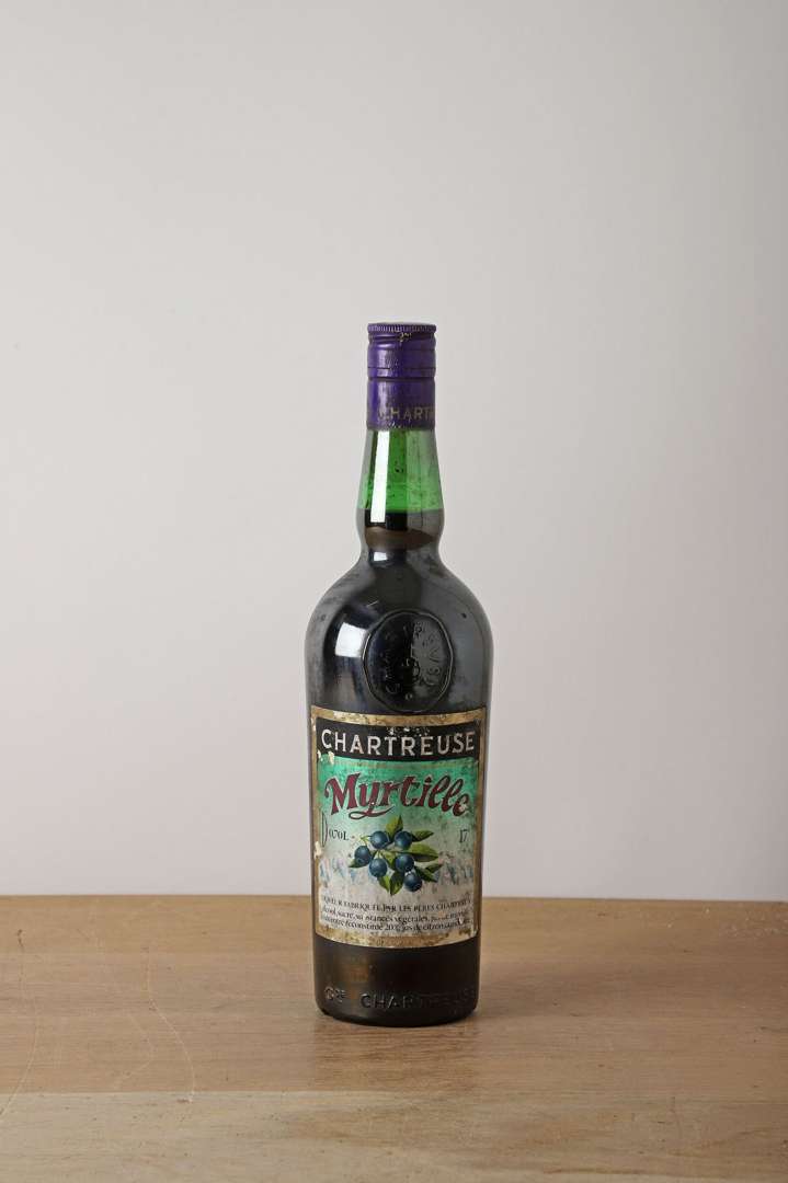 1 B CHARTREUSE MYRTILLE 70 cl 17% (e.a| contre étiquette très abimée| quelques marques capsule) - NM - Pères Chartreux