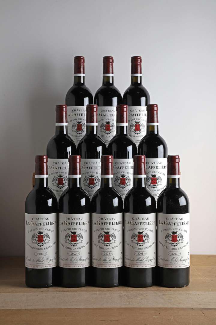12 B CHÂTEAU LA GAFFELIERE (Caisse Bois d'origine) (2 c.a. bas de jupes) - 2003 - GCC1B Saint-Emilion