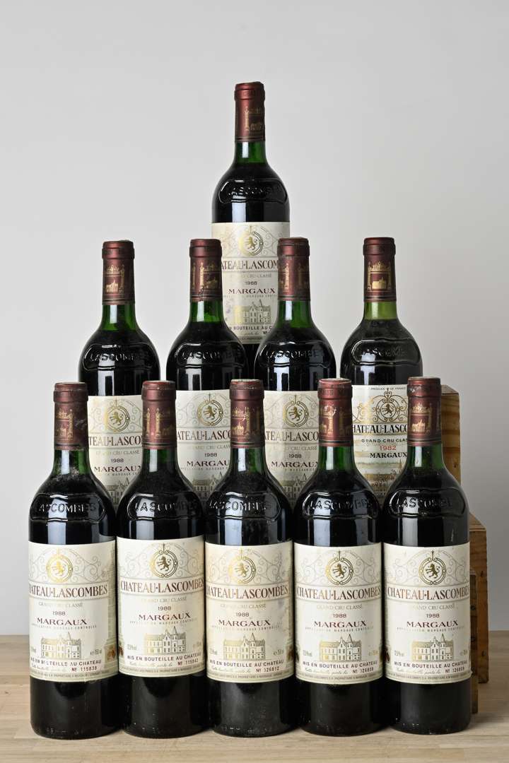 9 B CHÂTEAU LASCOMBES (4 T.L.B.+; 4 T.L.B; e.t.h. légères à e.t.h.) - 1988 - GCC2 Margaux 1 B CHÂTEAU LASCOMBES (T.L.B.+; e.f.s. à e.l.a.) - 1982 - GCC2 Margaux